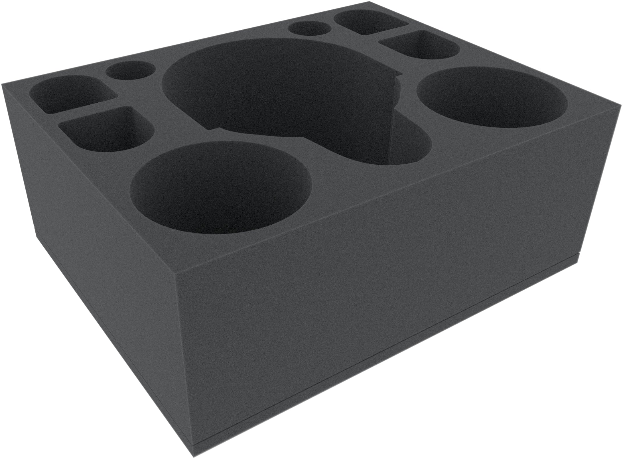 The Full-Size foam tray has the dimensions: 345 mm x 275 mm x 135 mm total height (125 mm usable height + 10 mm foam base).