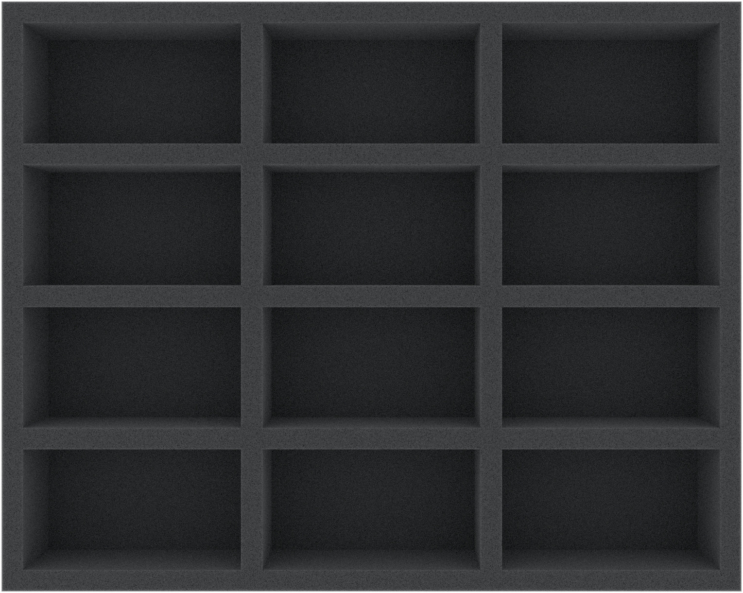 This Feldherr foam tray for Star Wars Vintage has 12 same-sized compartments. The tray is ideal for the safe storage of medium-sized miniatures (3.75 inches) like e. g. Imperial Stormtroopers or Luke Skywalker. The fine-pored foam provides ultimate protection against damage – fragile parts stay intact, surfaces don't get scratched.