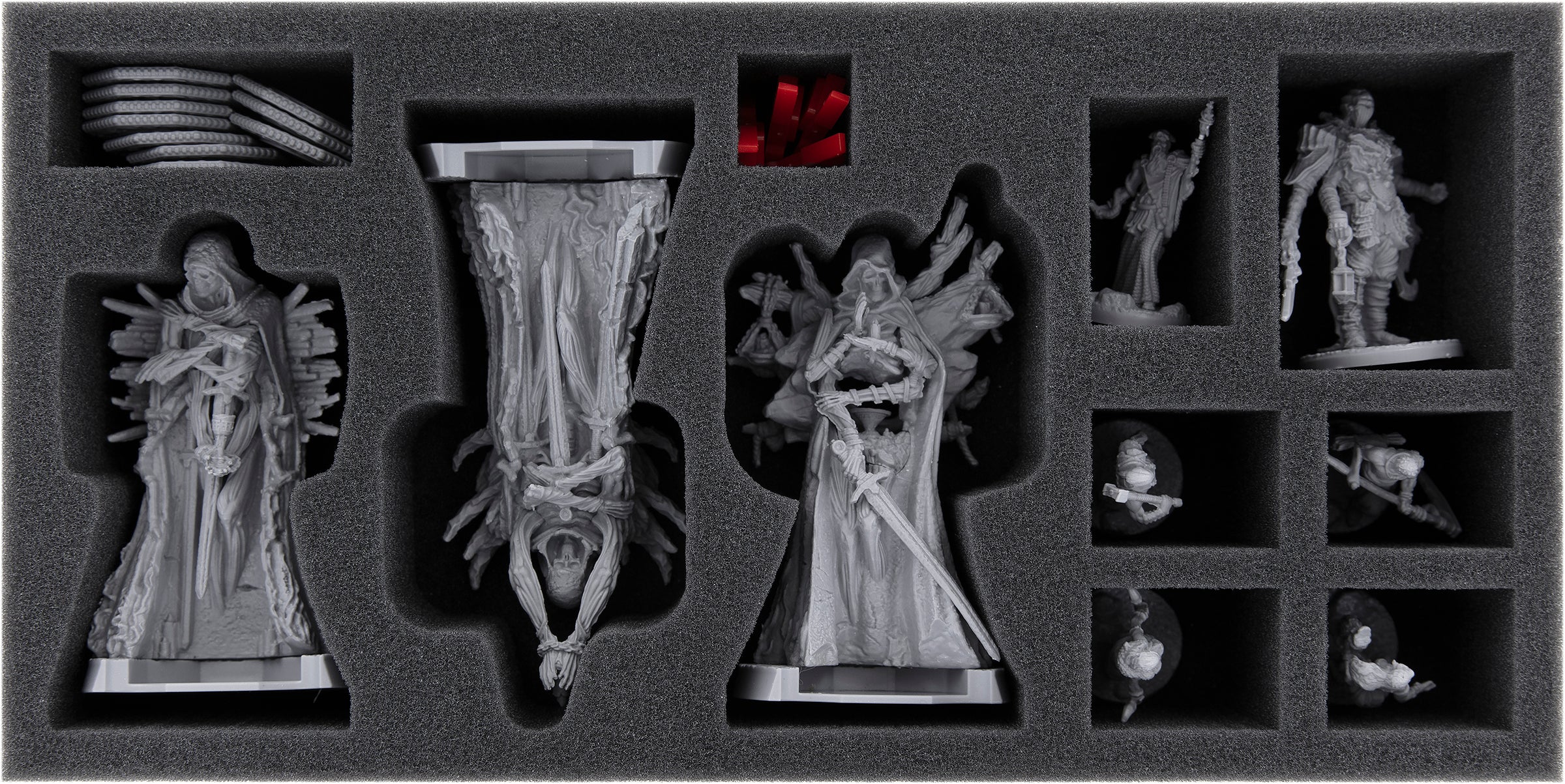 For Beor, Ailei, Arev, Maggot, as well as fifth heroine in the bunch, Niamh, five compartments are reserved on the foam insert. Also, the three Menhir models and the Fore-Dweller are each assigned an individually tailored compartment. The custom-fit cut helps with sorting and also ensures that nothing slips around on the way. The sensitive parts of the figures are thus optimally protected against damage. If you paint your models, you can be assured that the colors are still unharmed after transport.