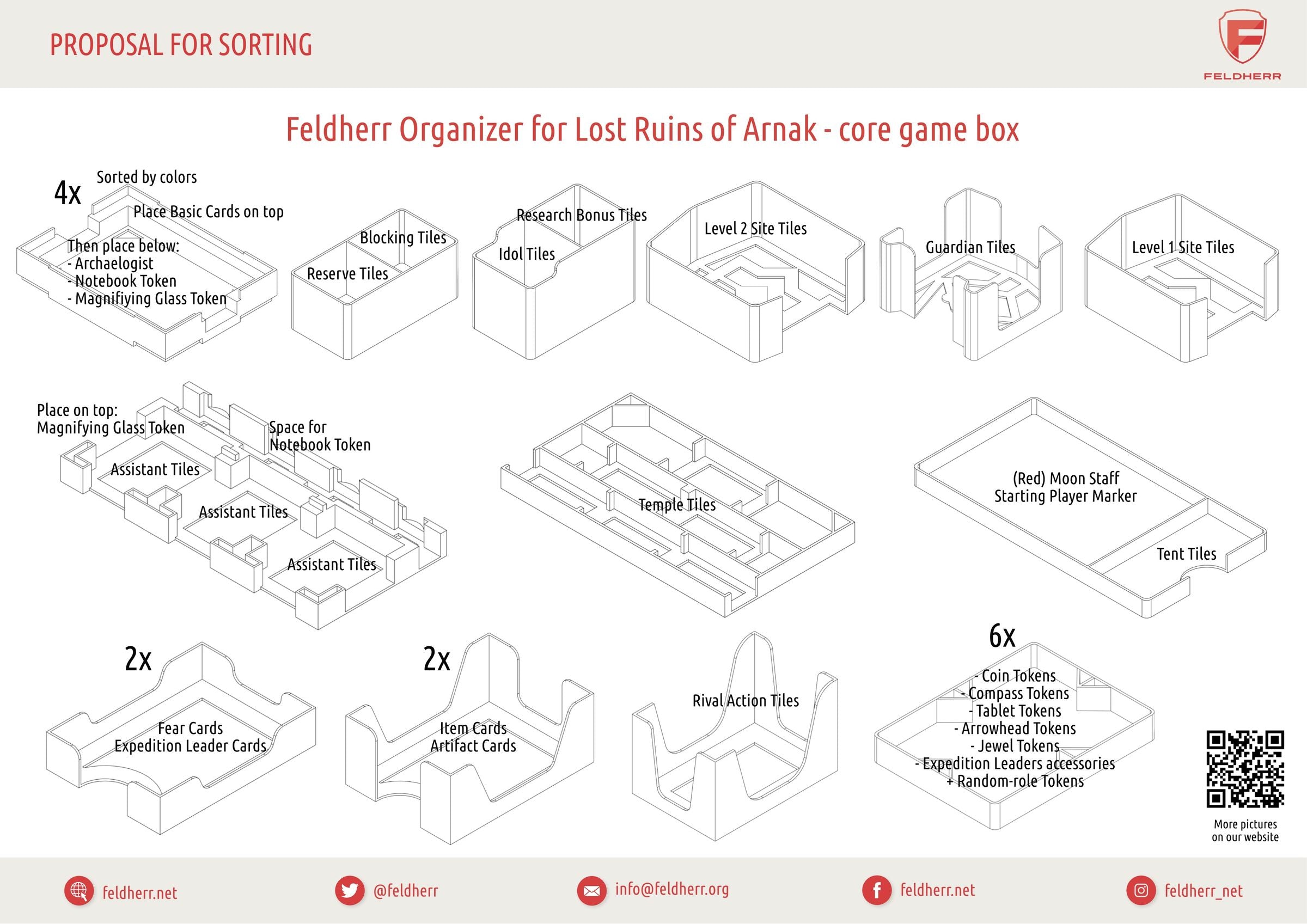 - The Organizer fits into the original core game box of “The Lost Ruins of Arnak”.