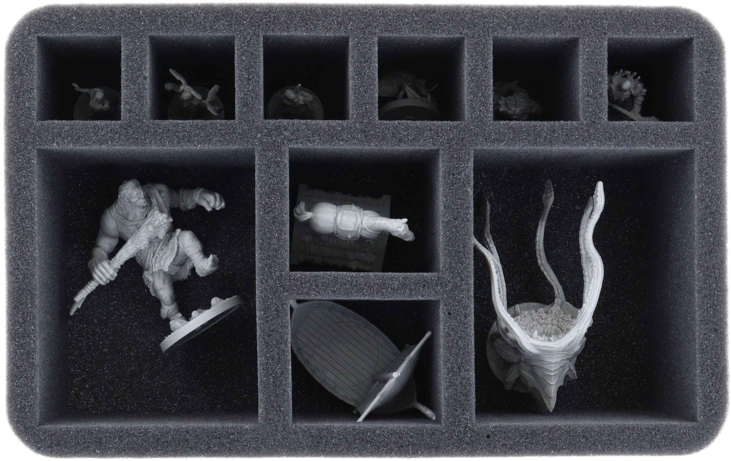 Each miniature has its own compartment. The custom-fit cut reliably protects your figures from damage.