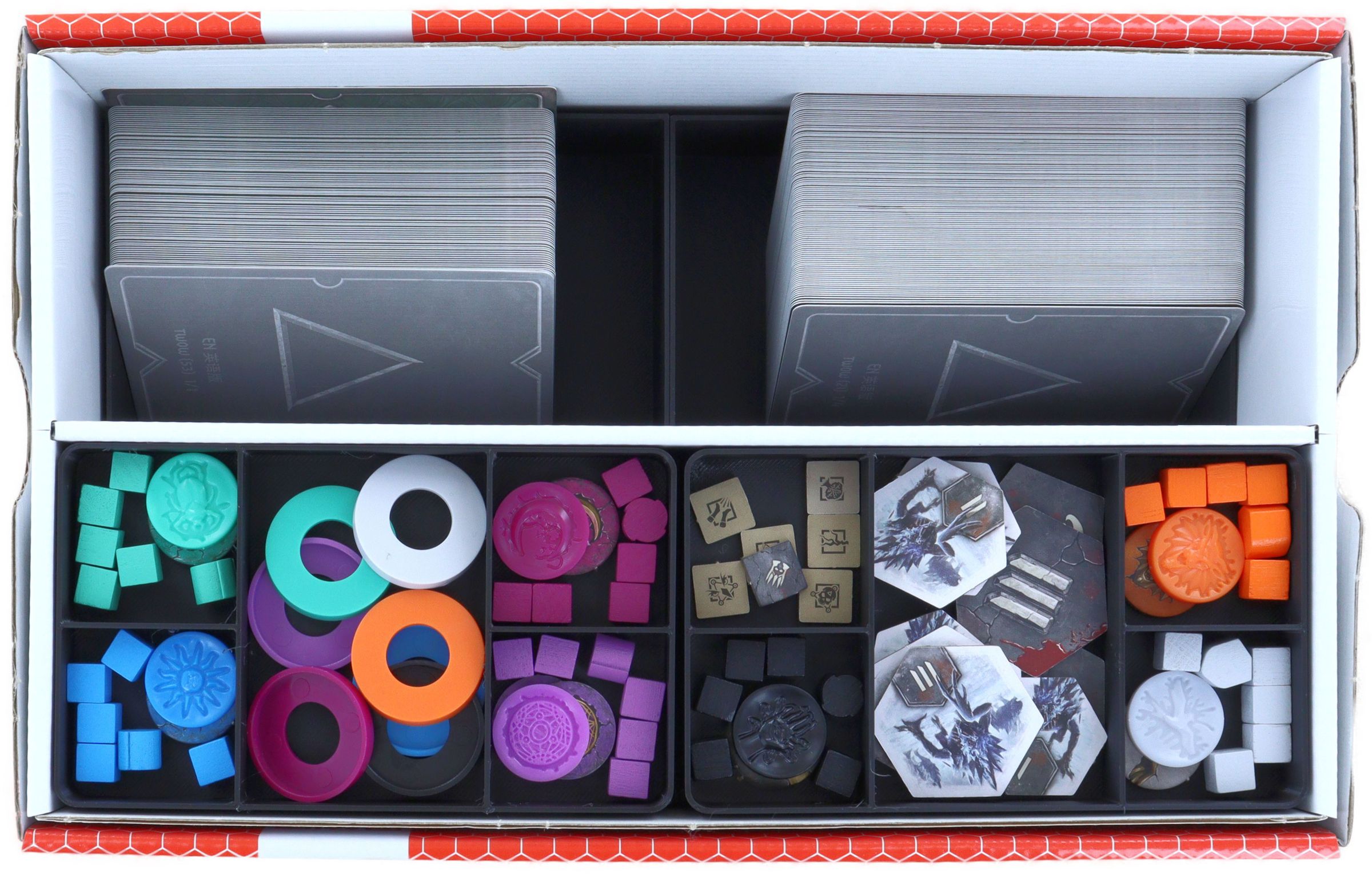 - The individually removable Organizer Inserts can be used as playing aids on the table. This improves the game experience and accelerates setup and speedup.