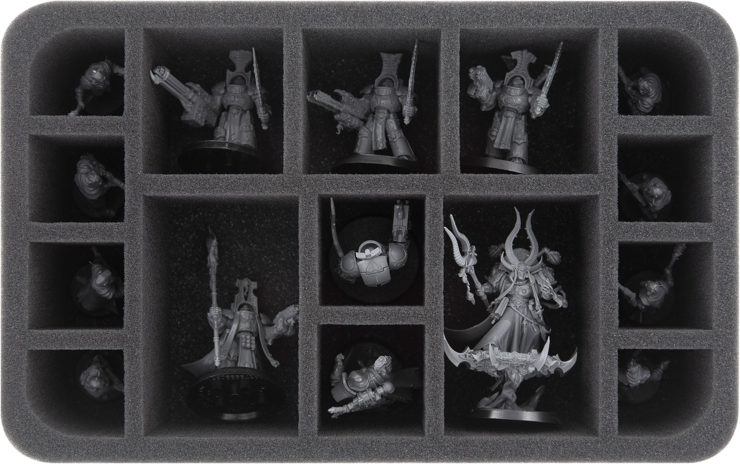 Finally, the included foam topper ensures that your models are securely packed all around and survive the transport to the gaming table undamaged.