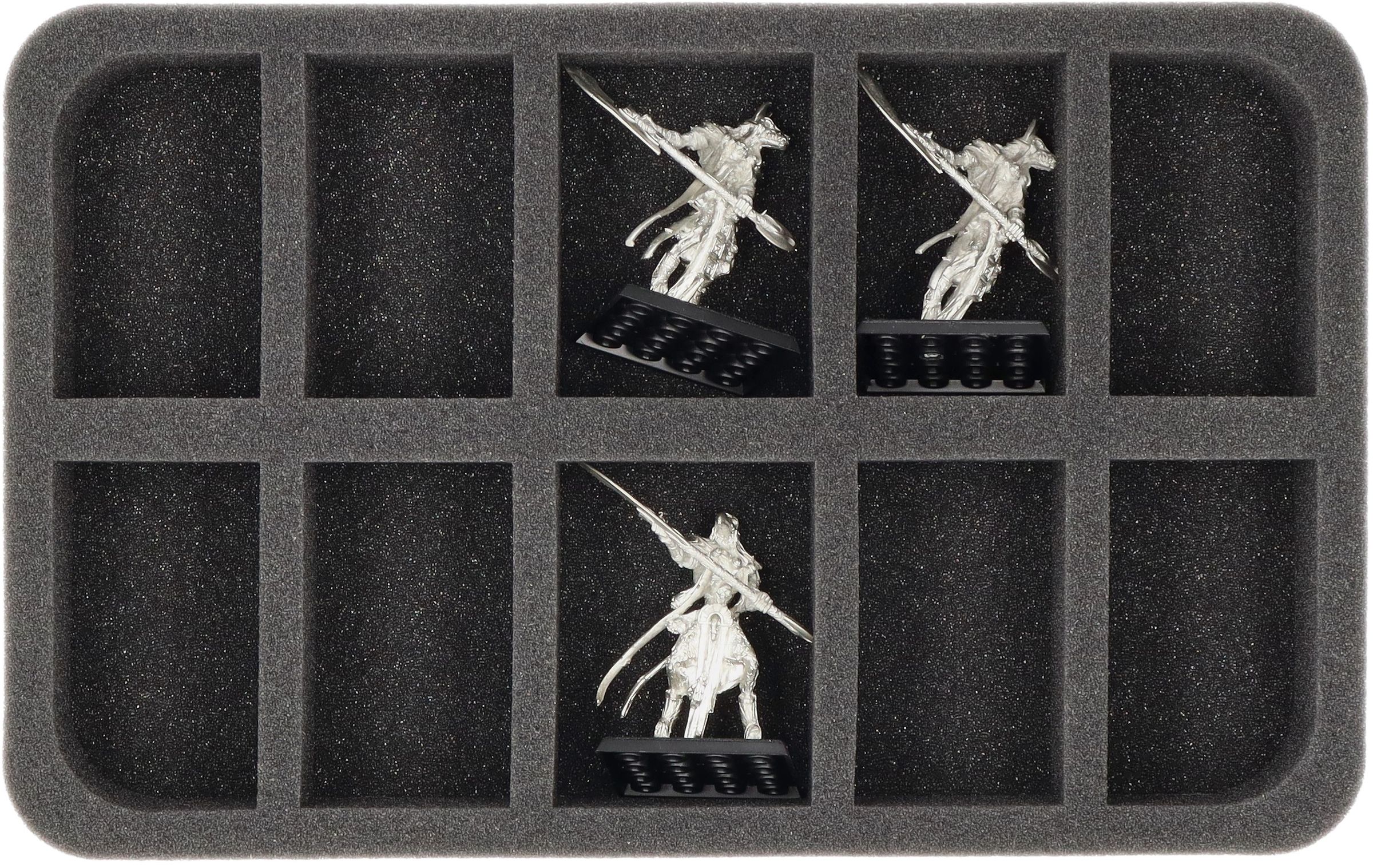 This Feldherr foam tray provides space for up to 10 miniatures from your army. The insert is particularly well-suited for storing bulky infantry units like Ushabti with Ritual Blades and miniatures of similar dimensions.