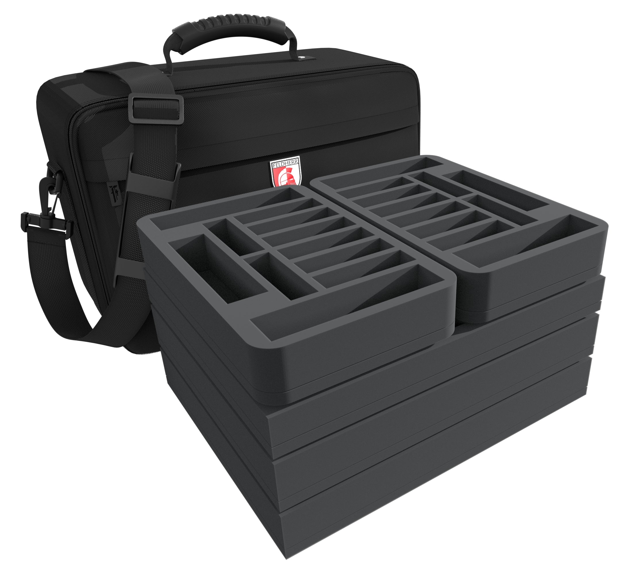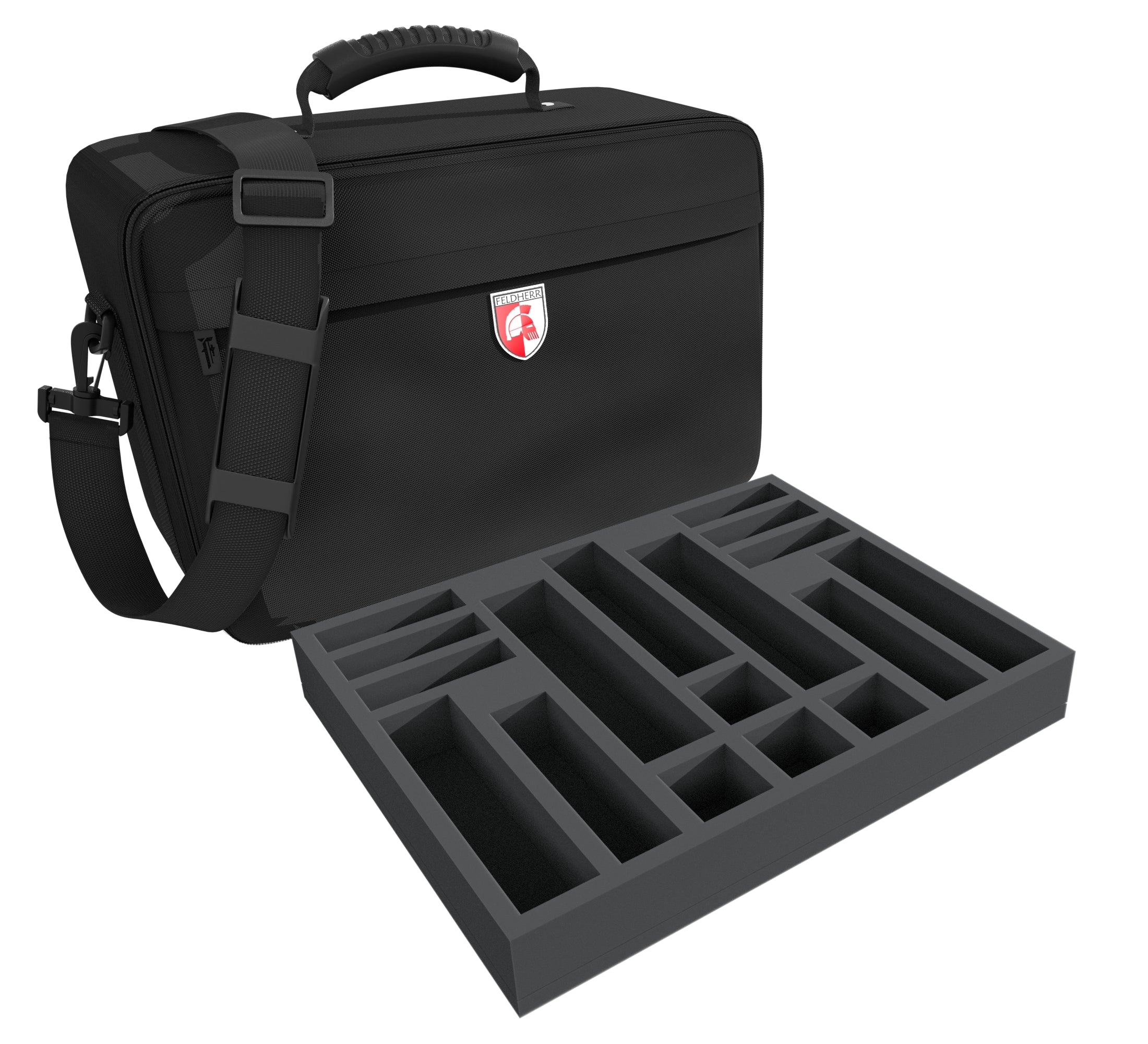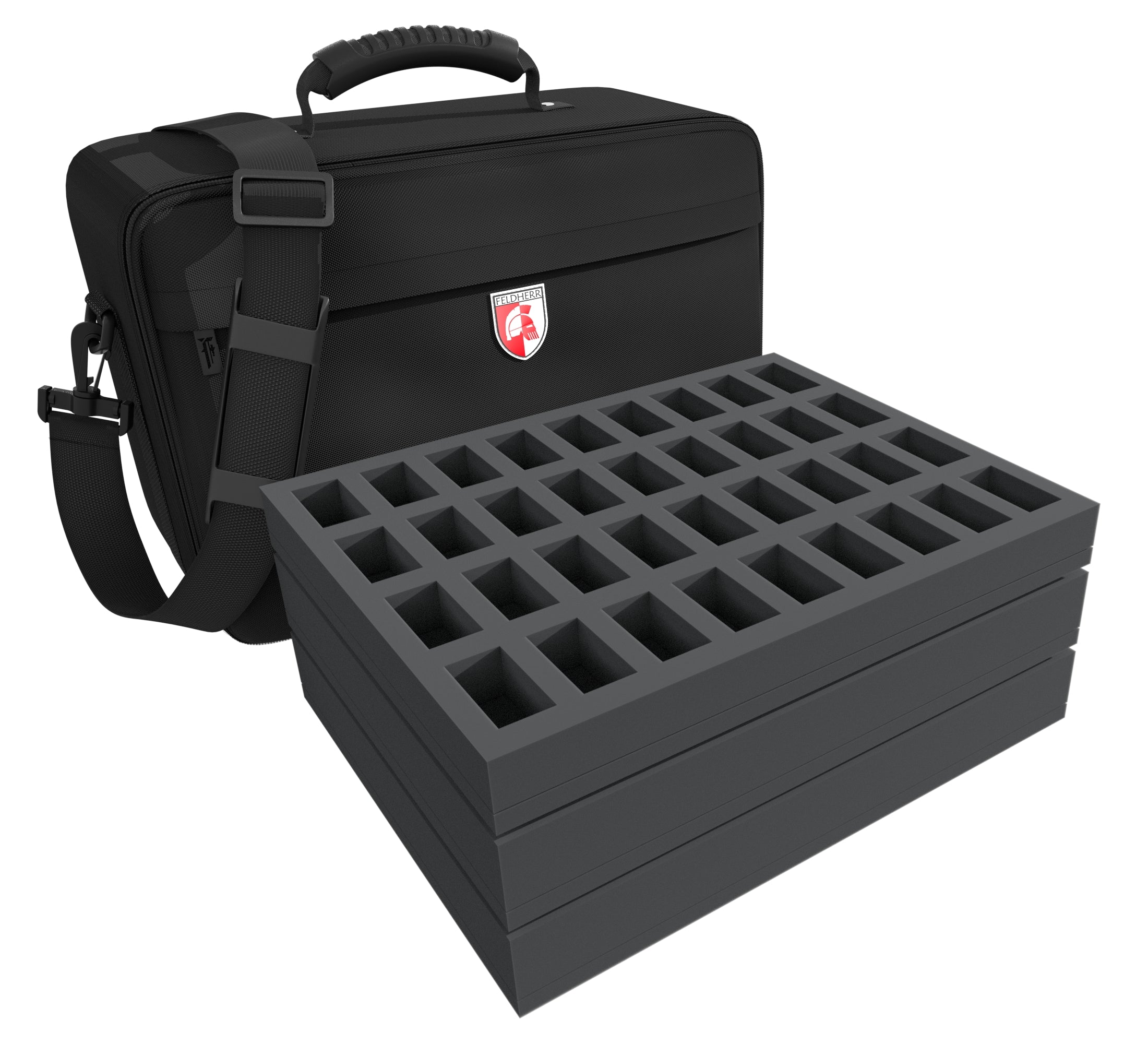 The battle is raging. Mighty guns fire deafening volleys. Exploding barrel bombs burst metal. Fire vaporizes the water. Thanks to this Feldherr MAXI bag you will not have to worry about your models anymore. Five Feldherr foam trays give your miniatures enough space to store them all.
