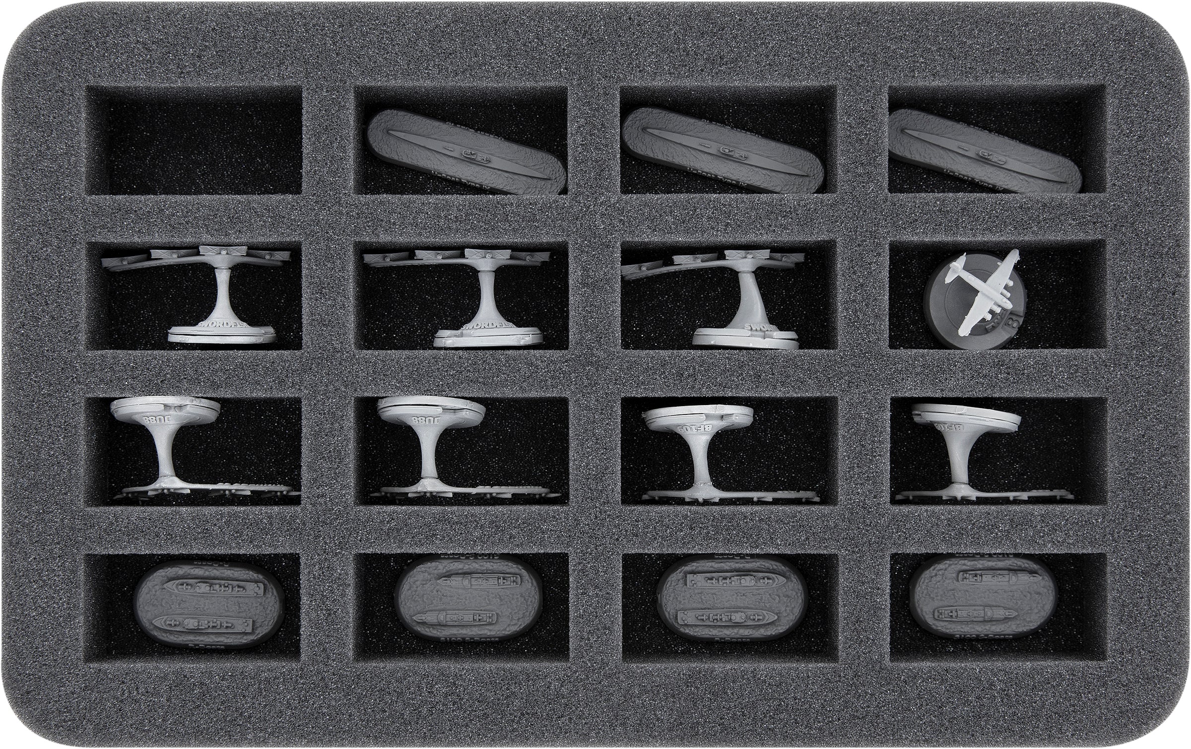 • Full-Size foam tray for 36 miniatures e.g. Ju88, BF 109, FW200, Swordfish, submarines or S-Boats (FS035A024)