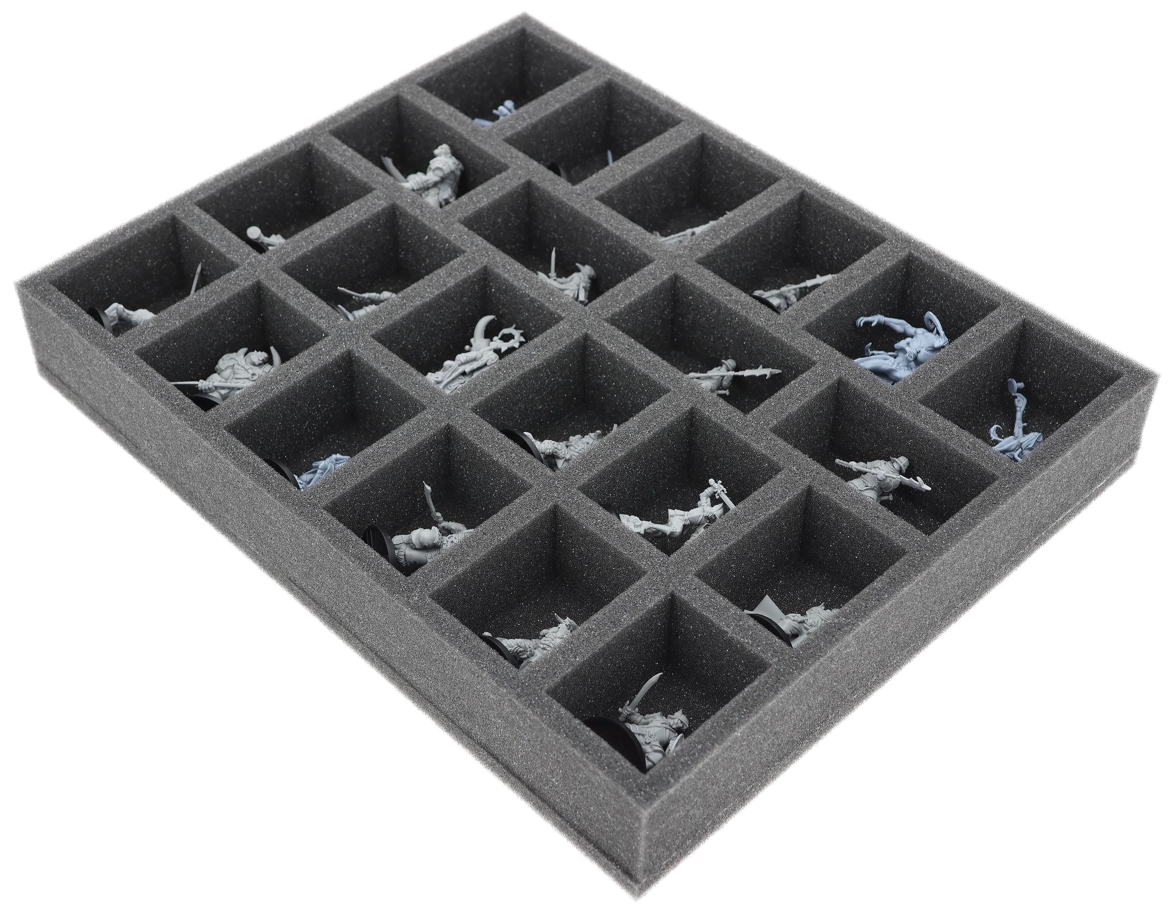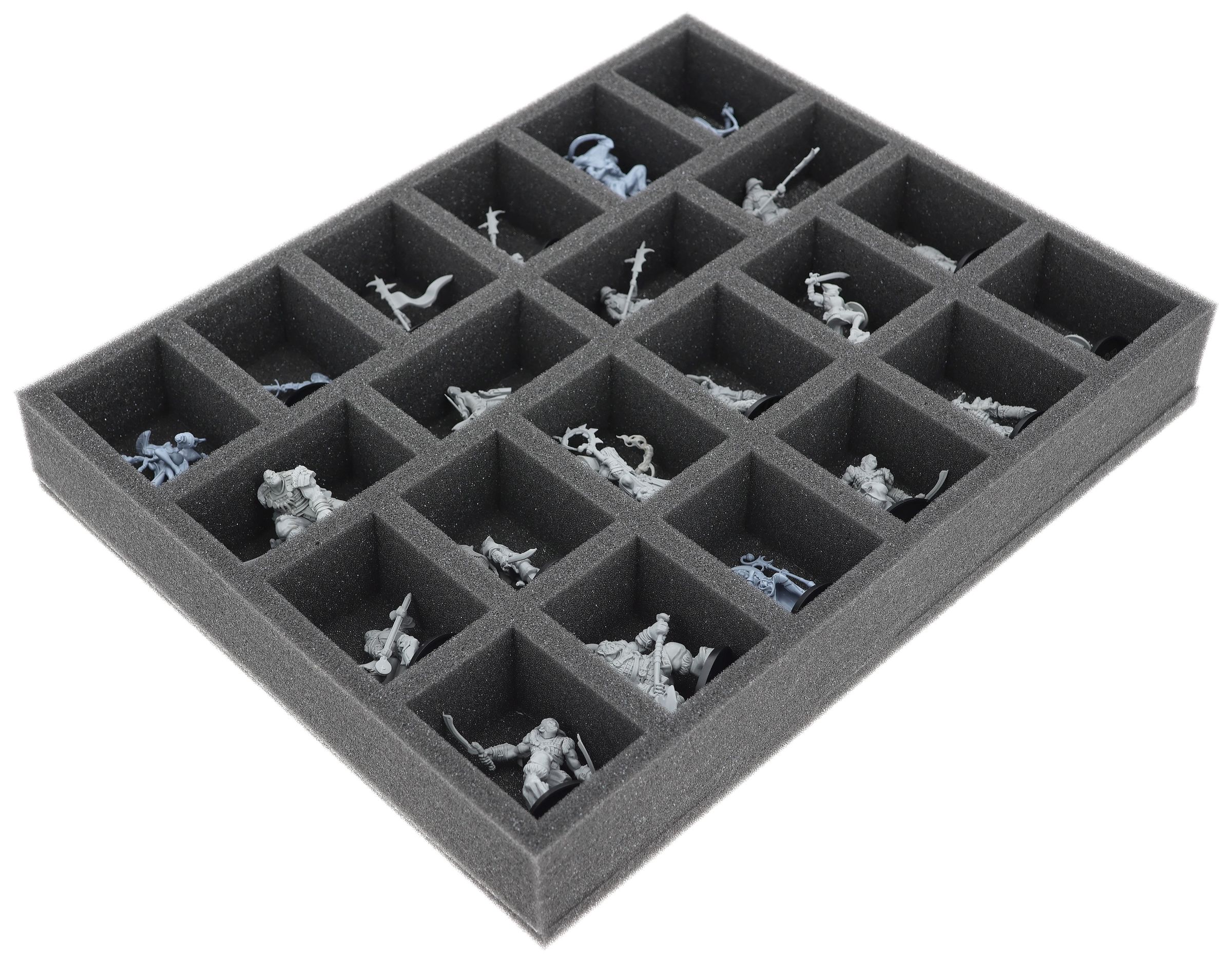 On this Feldherr foam tray you have space for up to 22 miniatures of your army. The insert is especially suitable for storing the Northern Tribes, Scions of Yaldabaoth and similar sized models.