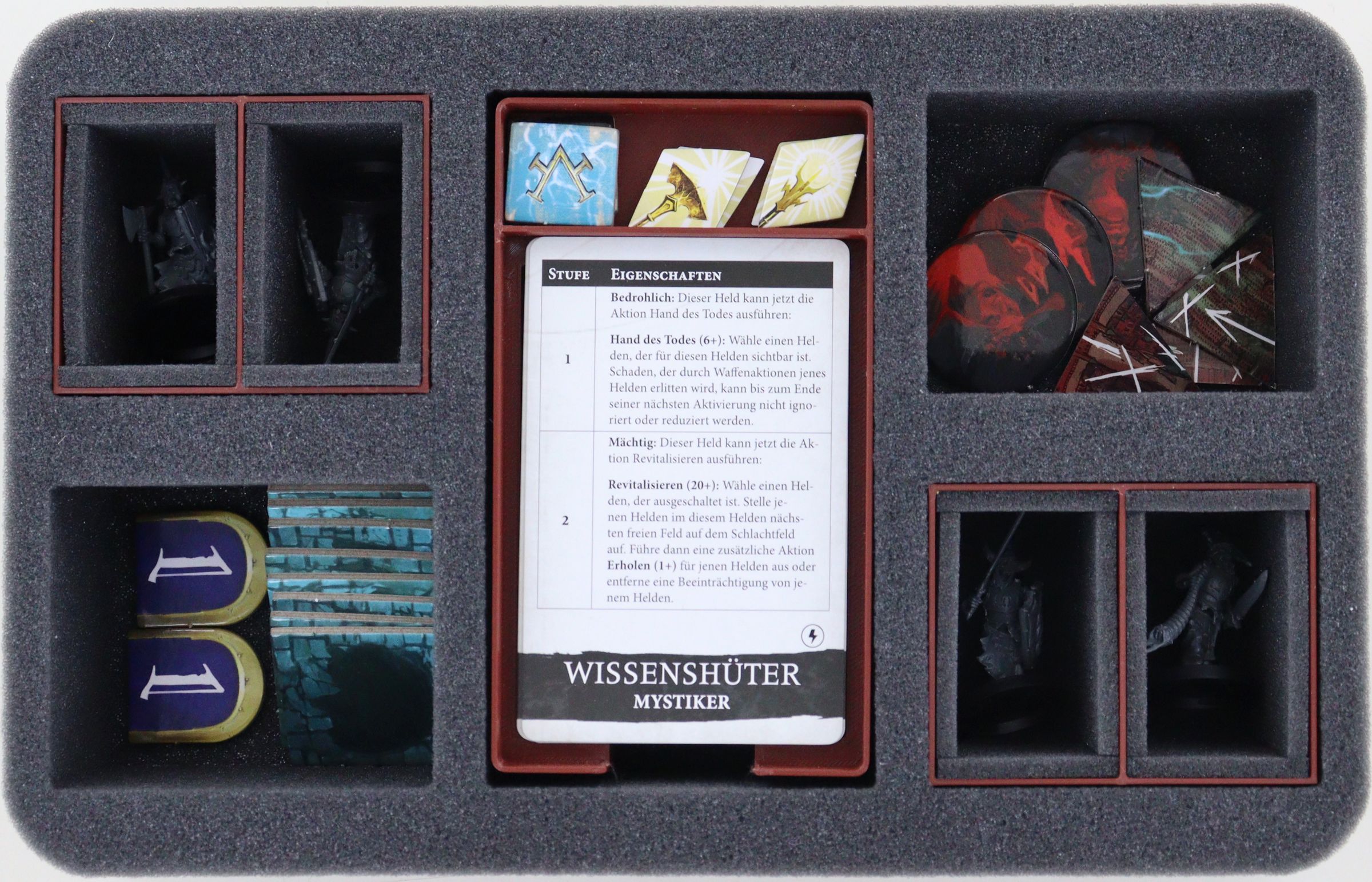 Due to the custom-fit cut, the miniatures have a firm seat and do not lose grip when transported through the Cursed City of Ulfenkarn. If you have painted your models, the soft foam protects the colors of your models from abrasion and ugly scratches.