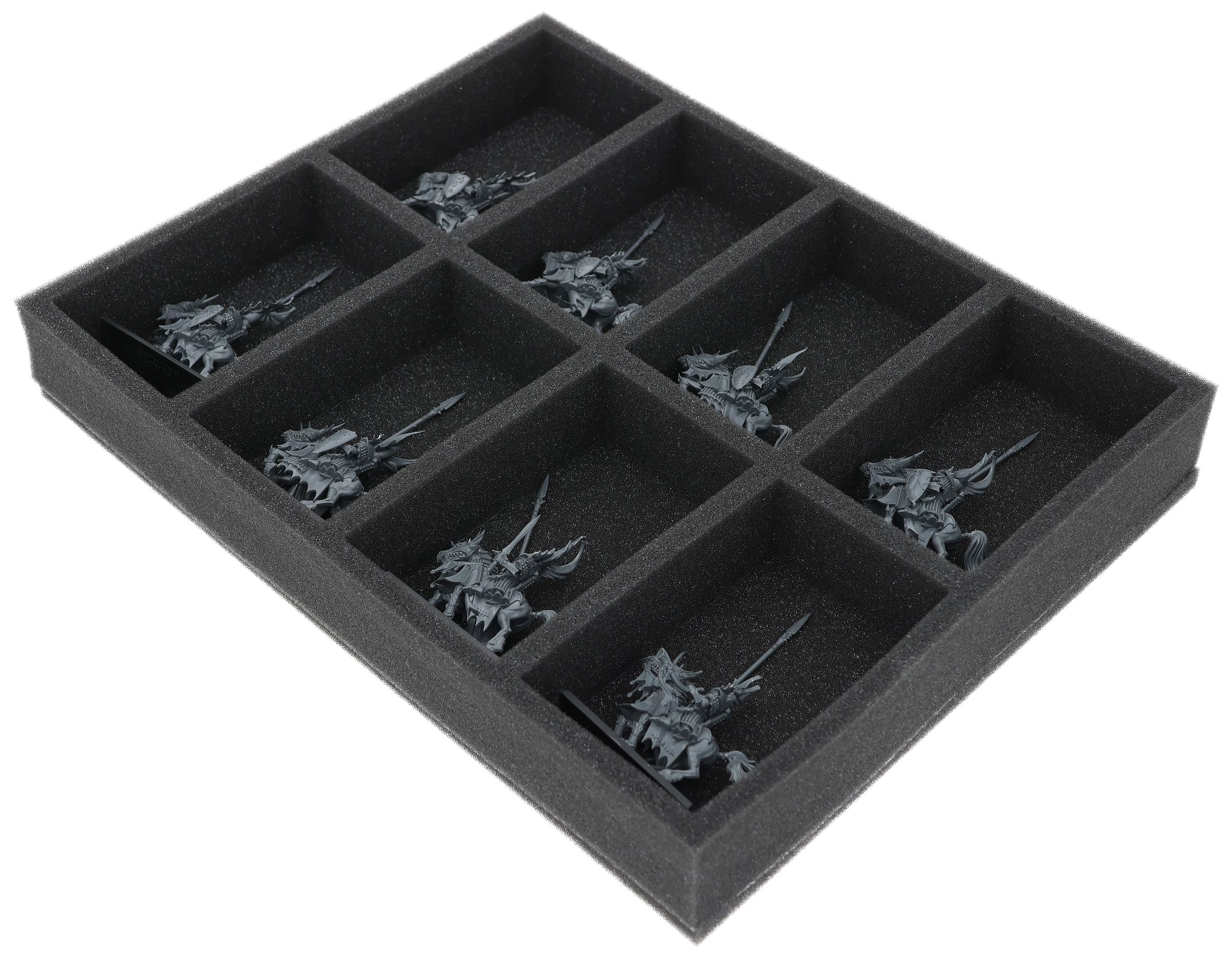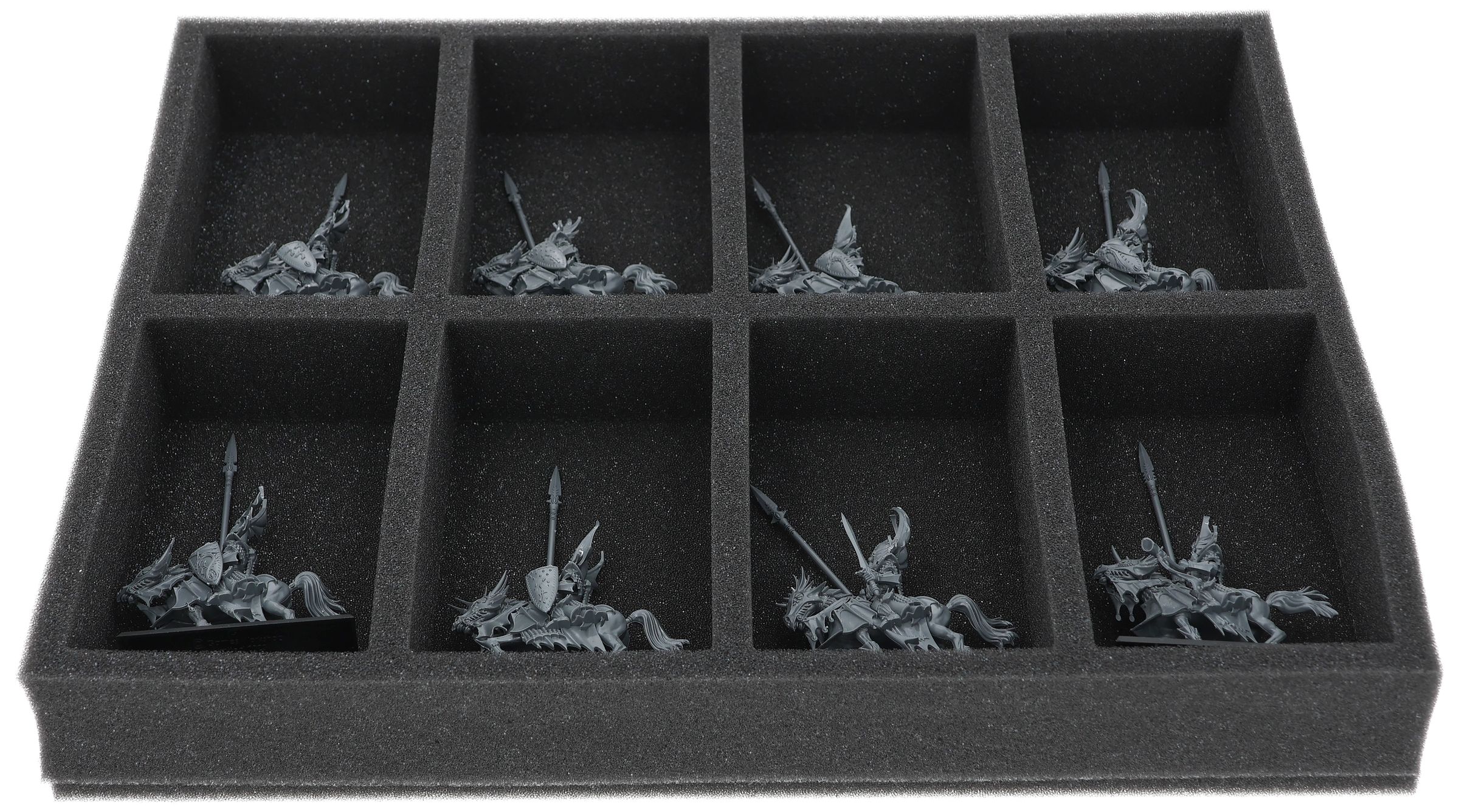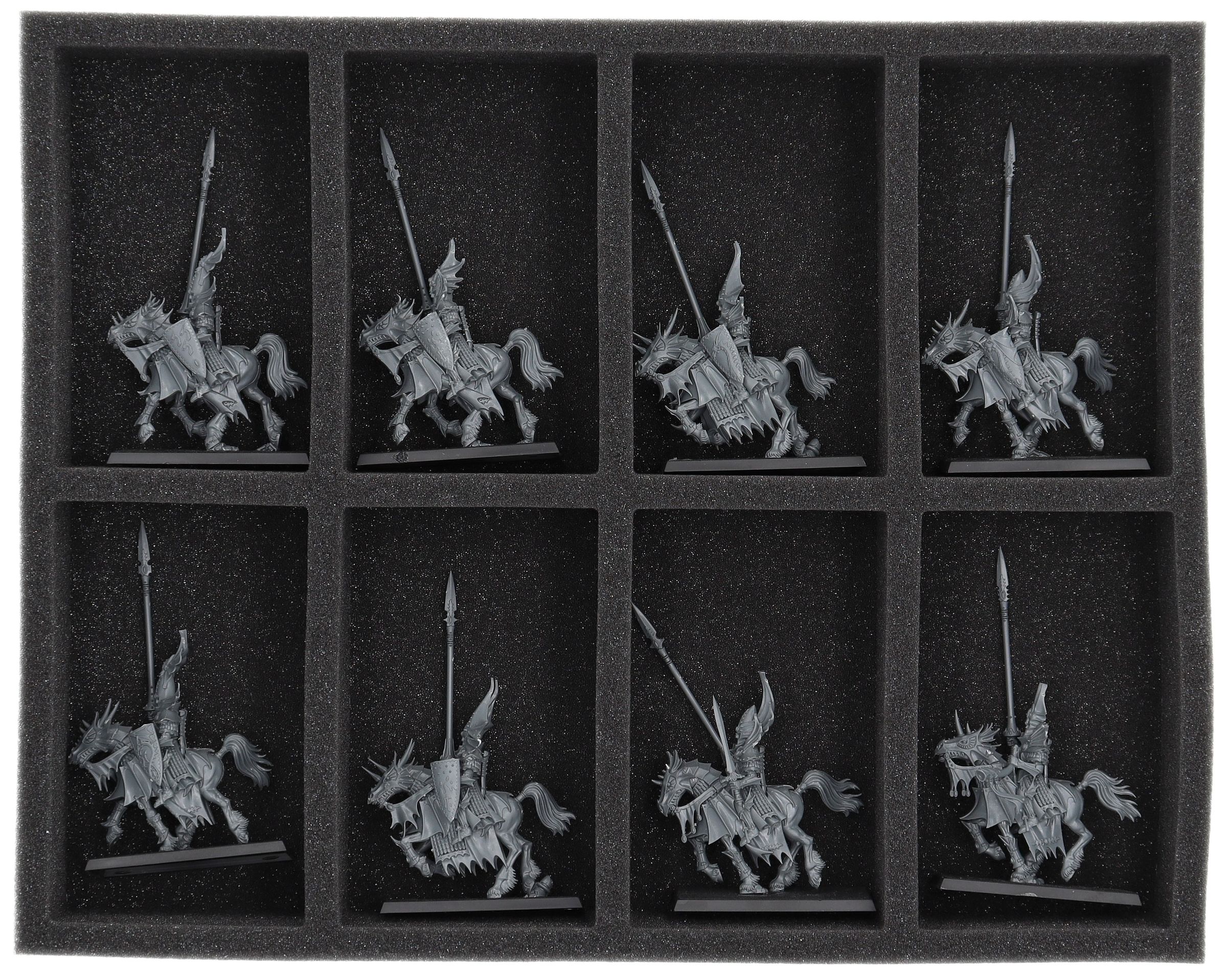 On this Feldherr foam tray you have space for up to 8 miniatures of your army. The insert is especially suitable for storing the Dragon Princes of Caledor,Silver Helms and similar sized models.