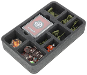 • Structured compartments for warbands, card decks, markers and tokens for a quick game set-up