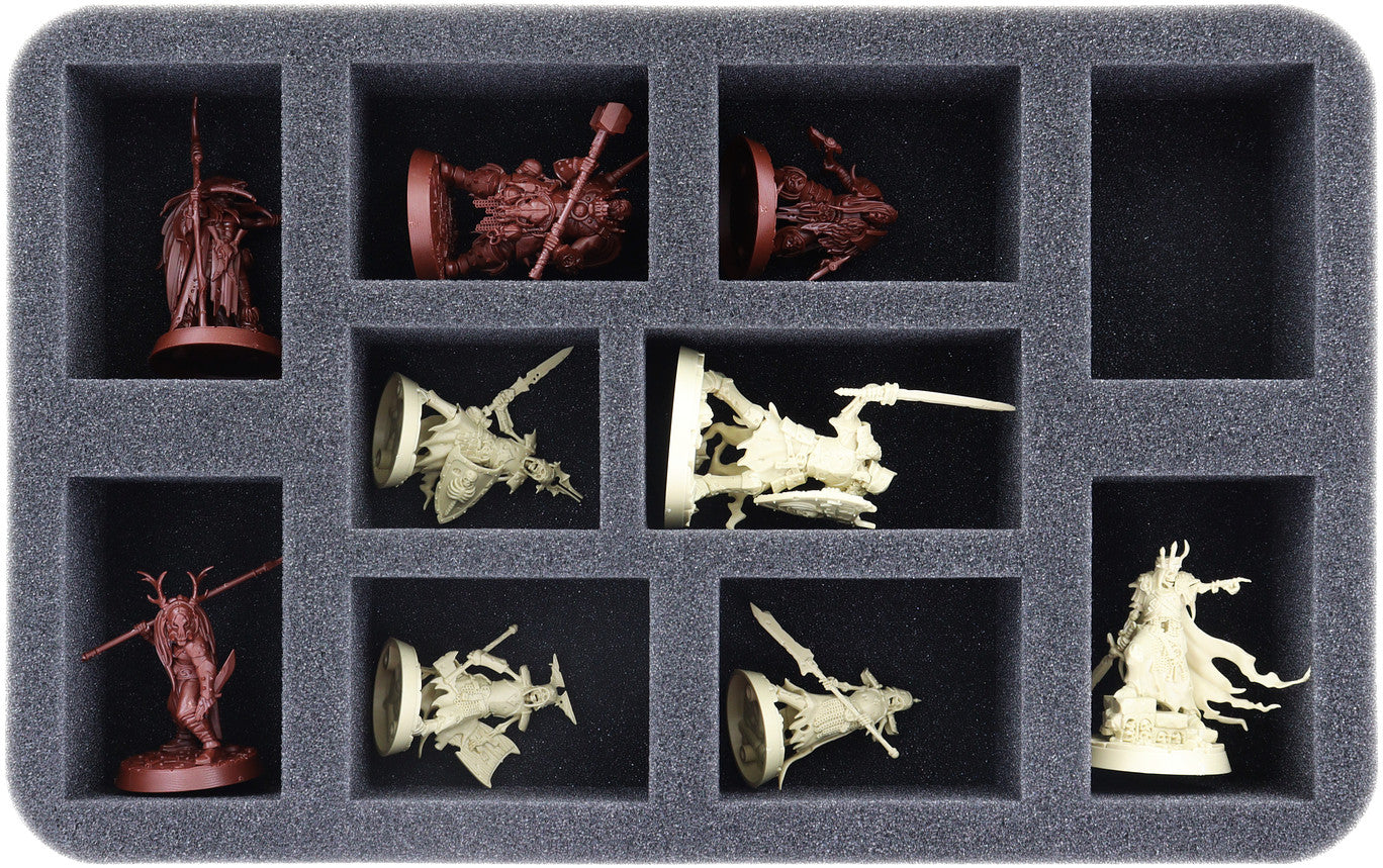 - 1 Half-Size foam tray with ten compartments for miniatures (HSLM050BO)
