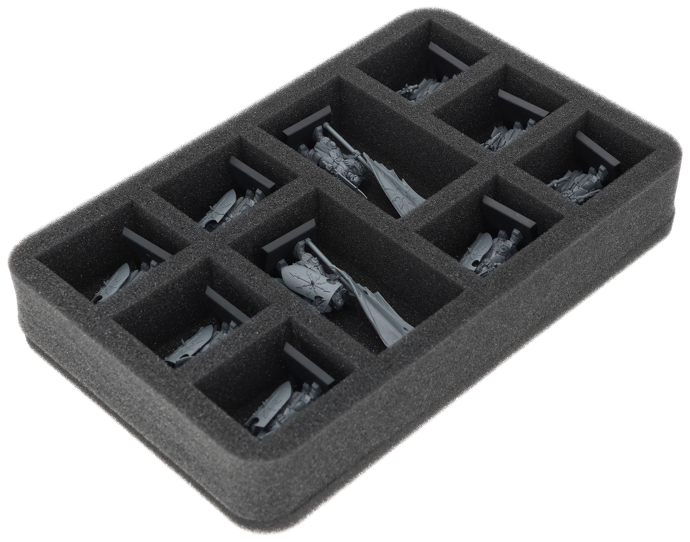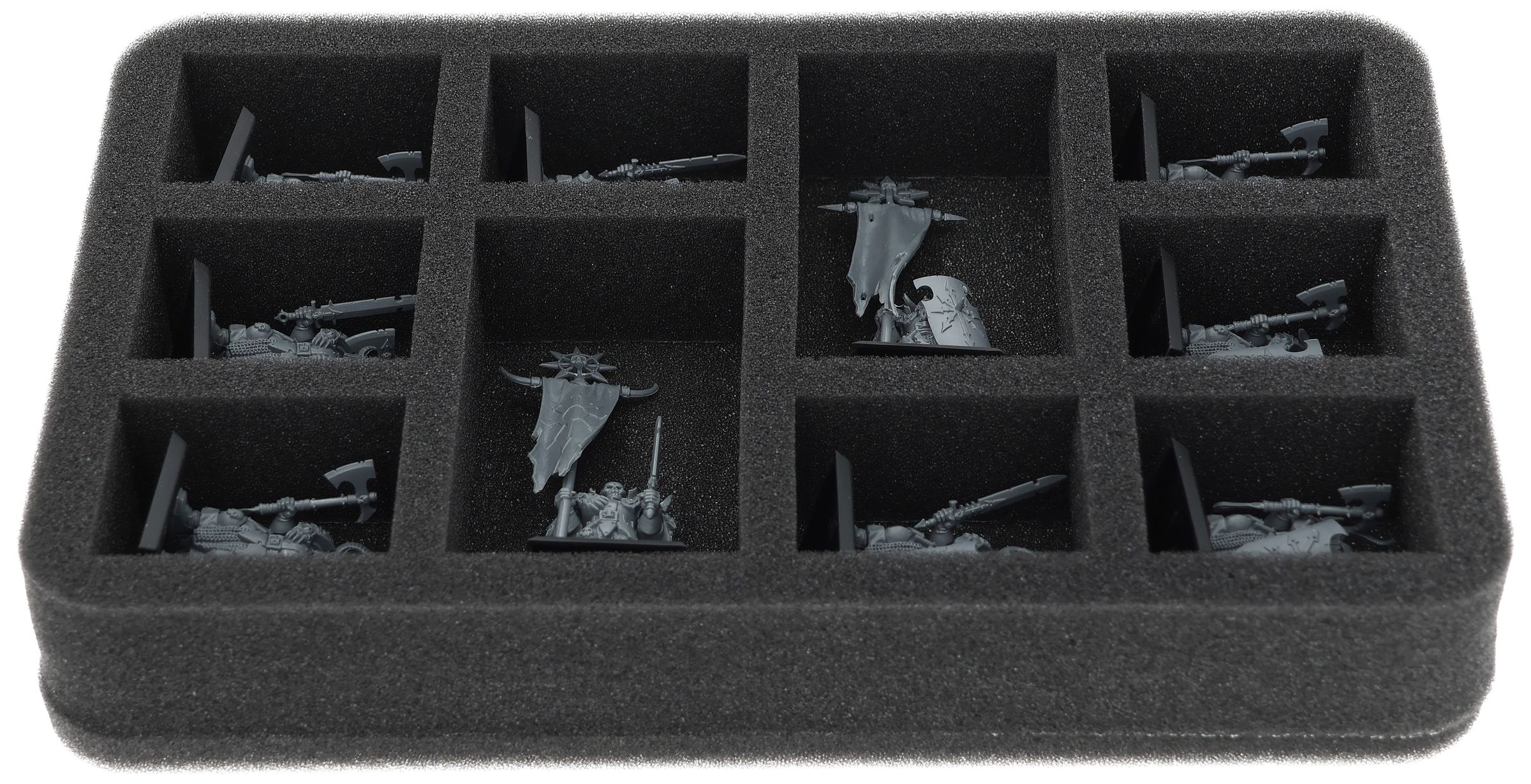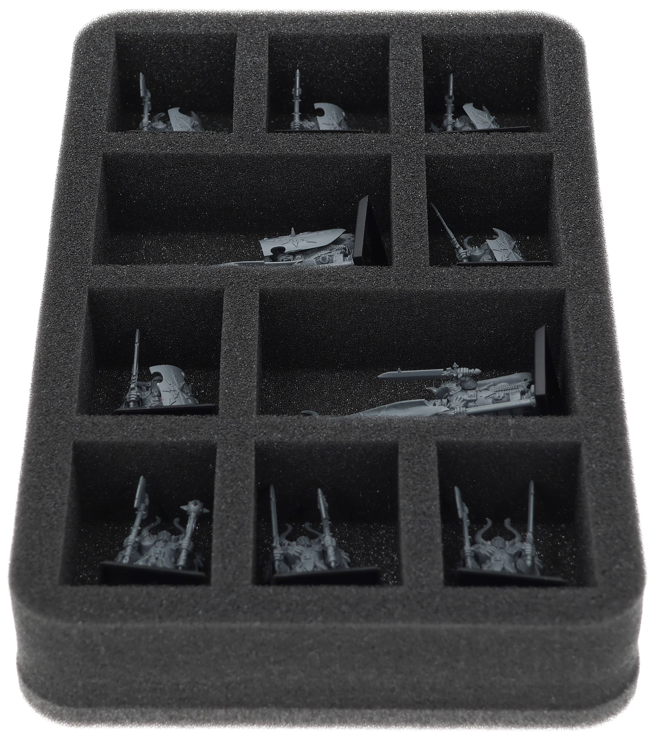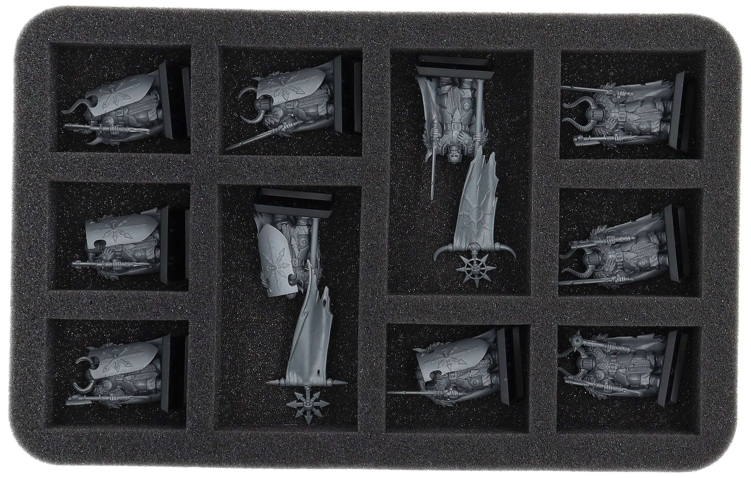 On this Feldherr foam tray you have space for up to 10 miniatures of your army. The insert is especially suitable for storing the Chaos Marauders, Chaos Warriors and similar sized models.