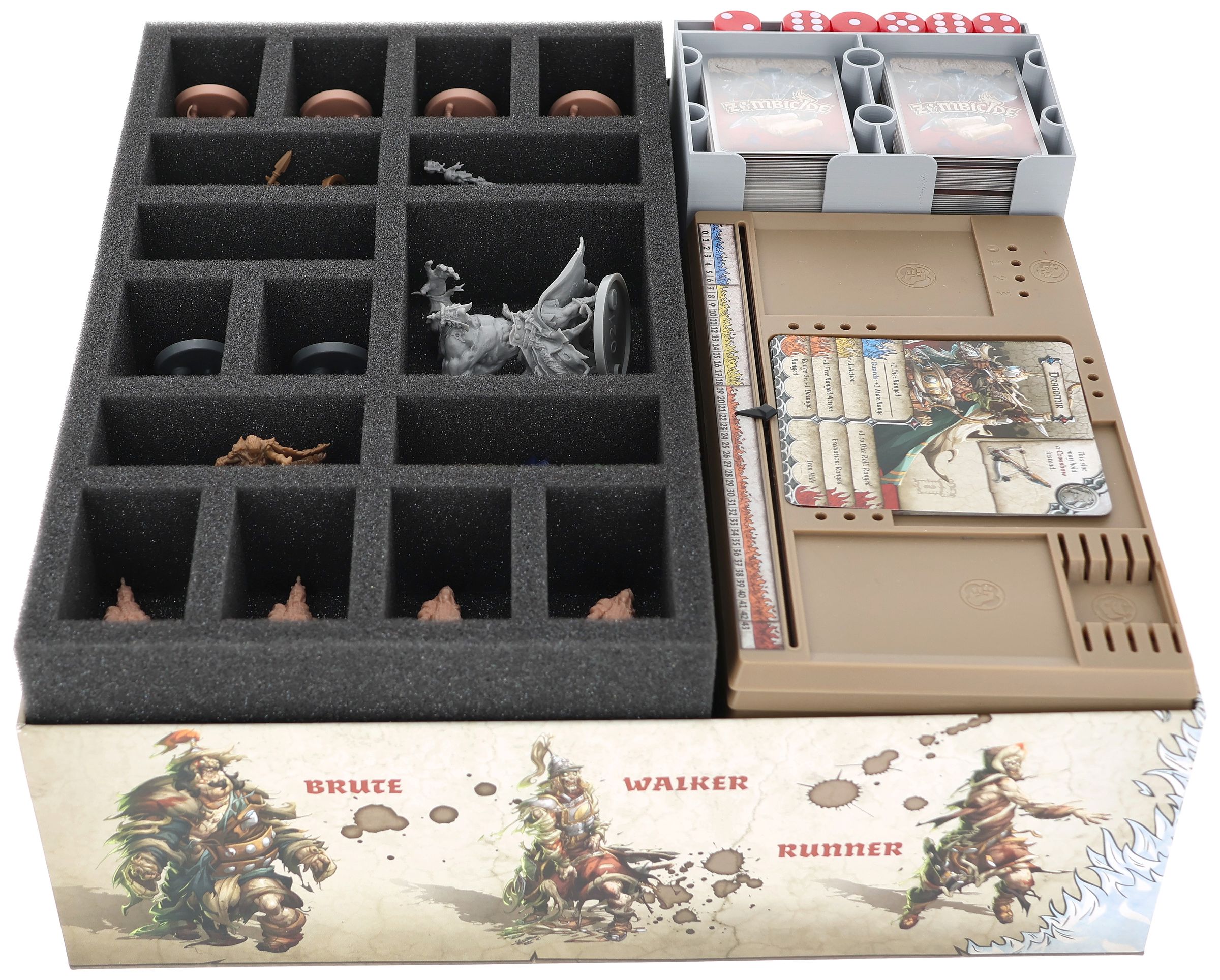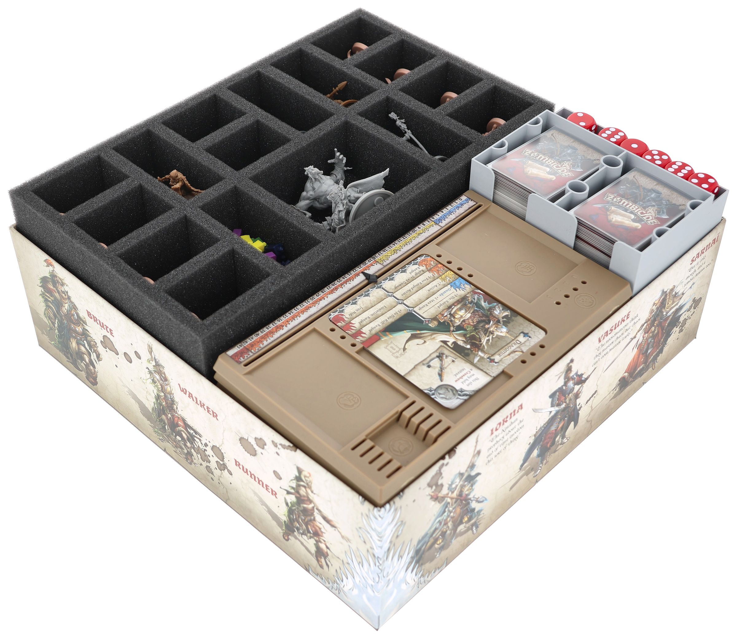 Our Feldherr foam insert with Organizer was designed specifically for the Zombicide: White Death core game box. It snugly holds your miniatures, protecting them from damage and helping you keep everything organized during and after the game.