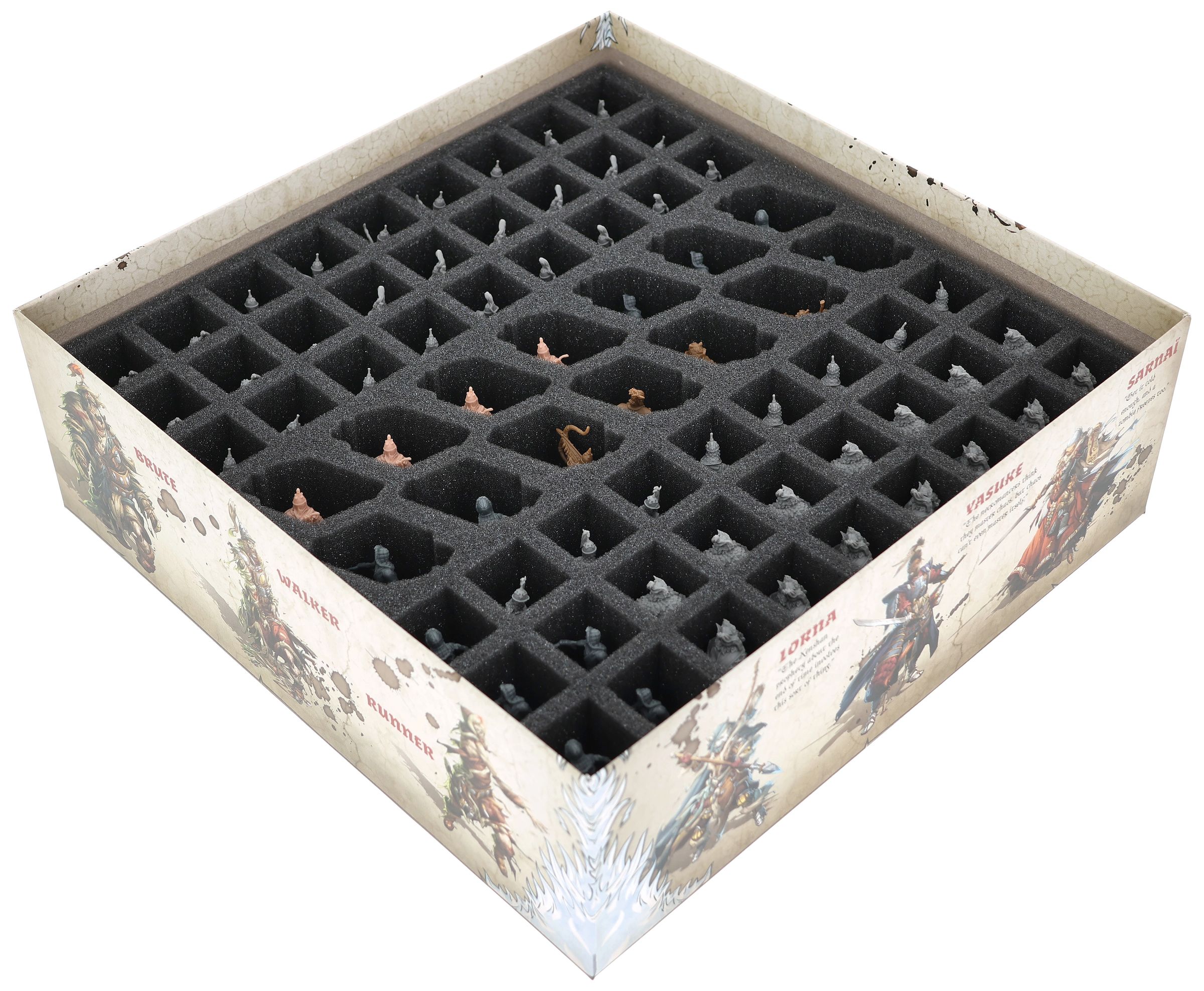 - The two custom-cut foam inserts ensure safe storage - each figure has its own compartment - and optimal protection, even for painted miniatures.